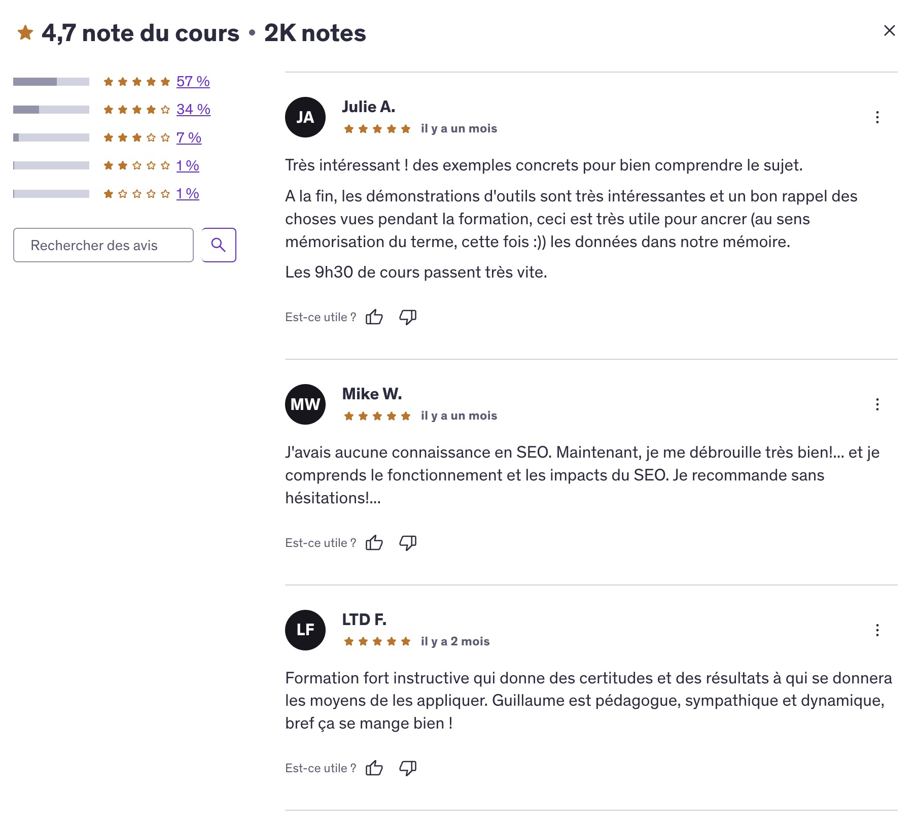 Plus de 7000 personnes ont suivi cette formation et m'ont fait confiance pour apprendre le SEO.